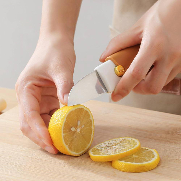 این وسیله از یک پوستکن و یک چاقو تشکیل شده است. از قسمت پوستکن برای پوستگیری پوستهها و سبزیجات استفاده کنید. از سمت چاقو برای برش و برش استفاده کنید که با پوست کندن و جدا کردن چندین سبزی و میوه از جمله سیب زمینی، سیب، گلابی، هویج، خیار، انبه، کیوی، پرتقال و غیره بسیار کار می کند.
