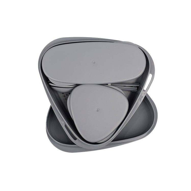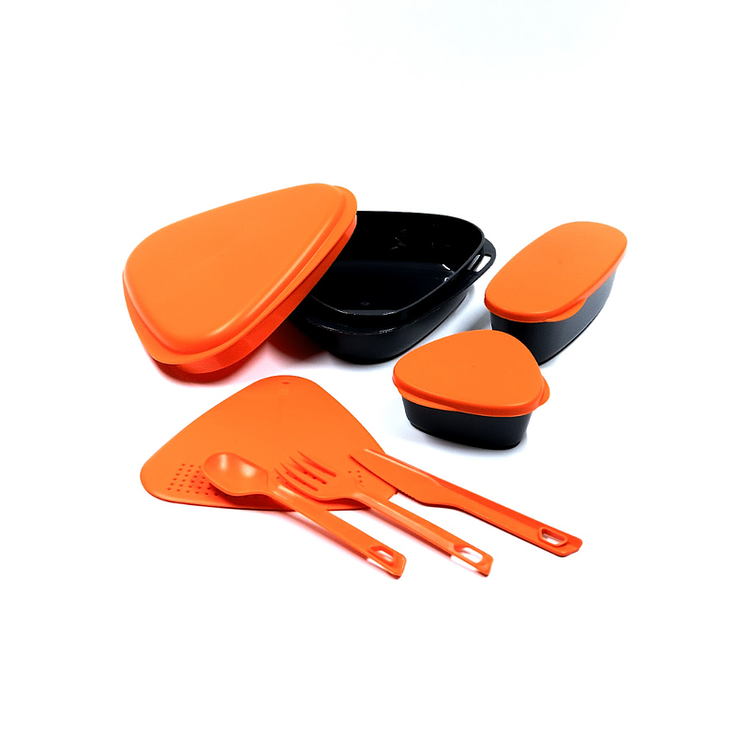 این پک دارای یک ظرف مثلثی بزرگ، تخته برش، یک ظرف مثلثی کوچک، یک ظرف بیضی و ست قاشق چنگال کارد است، که همه از جنس پلیپروپیلن خوراکی تهیه شدهاند.